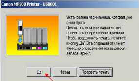 Если вы являетесь обладателем принтера с раздельными чернильницами (когда каждый цвет помещен в отдельном картридже), то вам придется несколько раз подряд ответить на появляющиеся вопросы компьютера нажатием кнопки «ДА», которая высветится на экране.